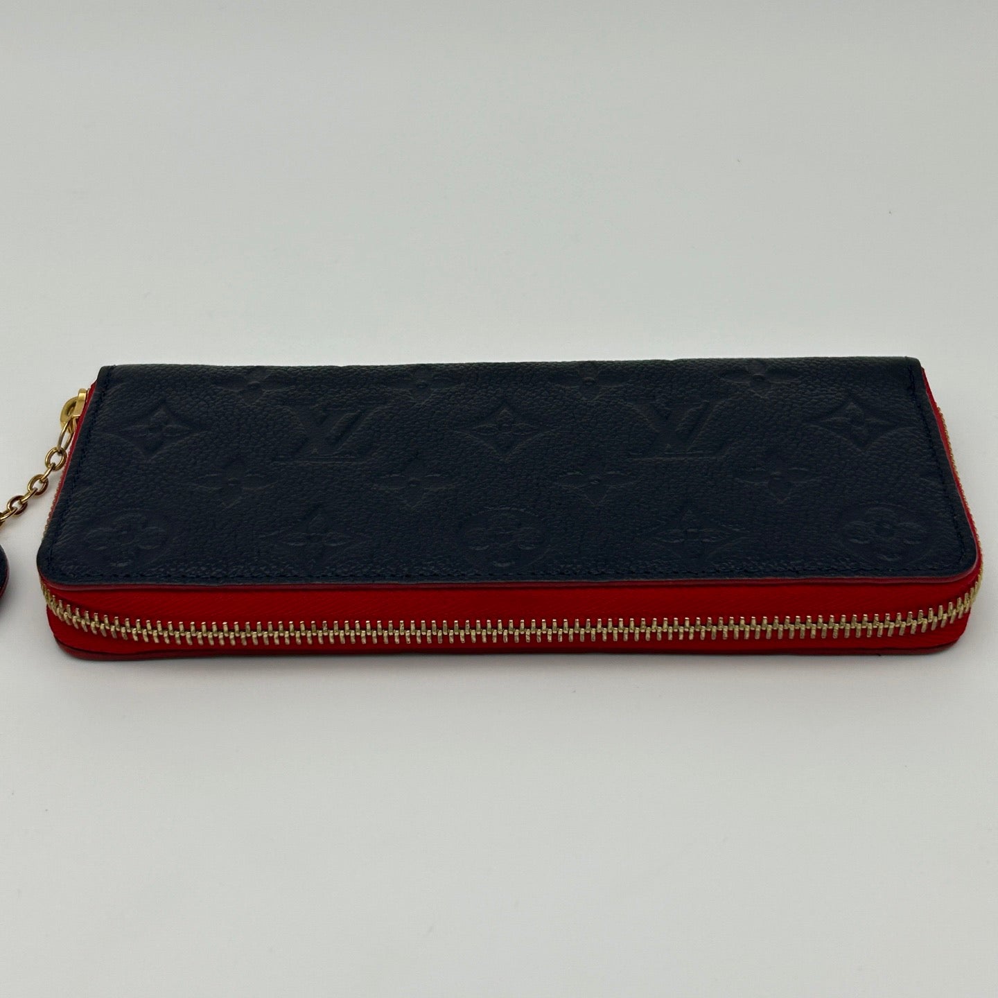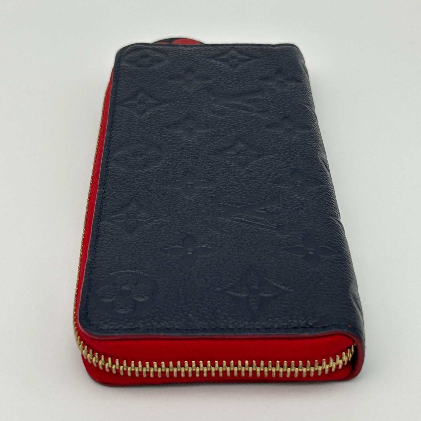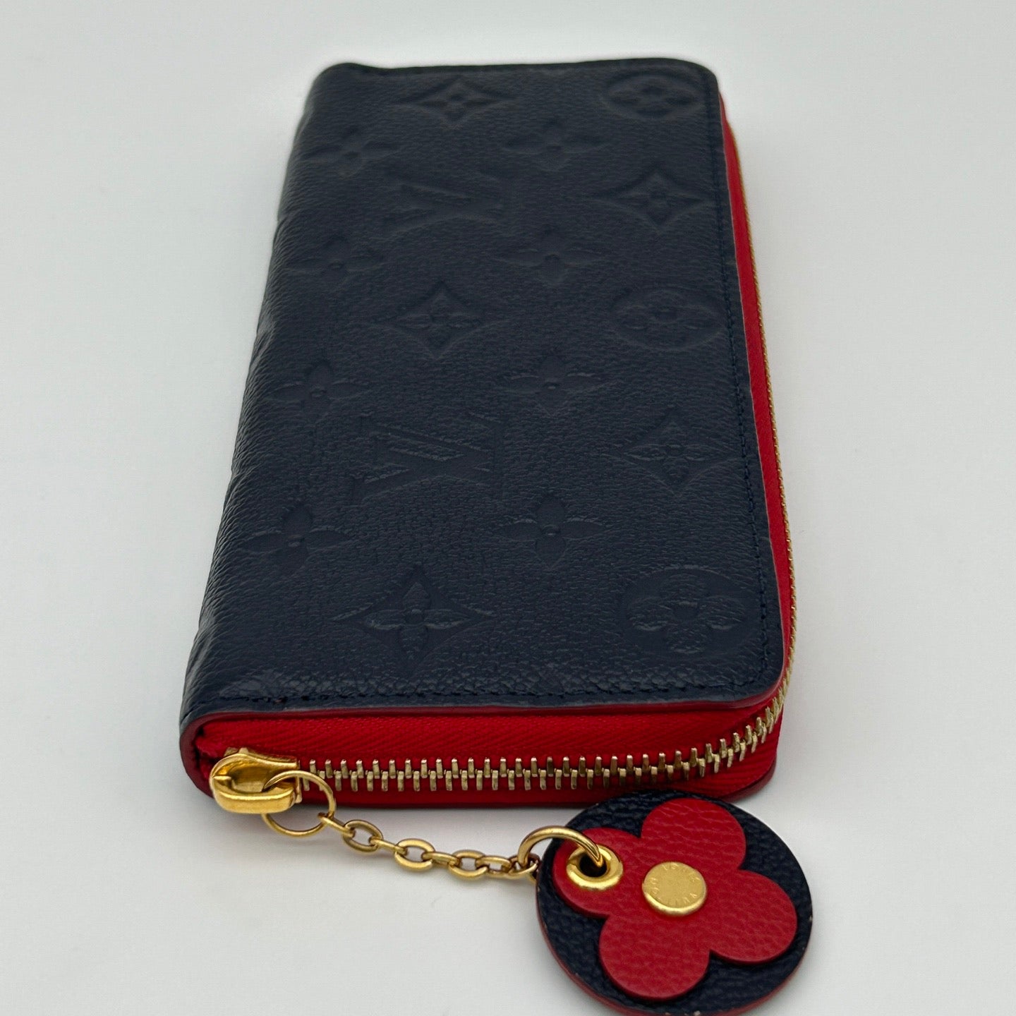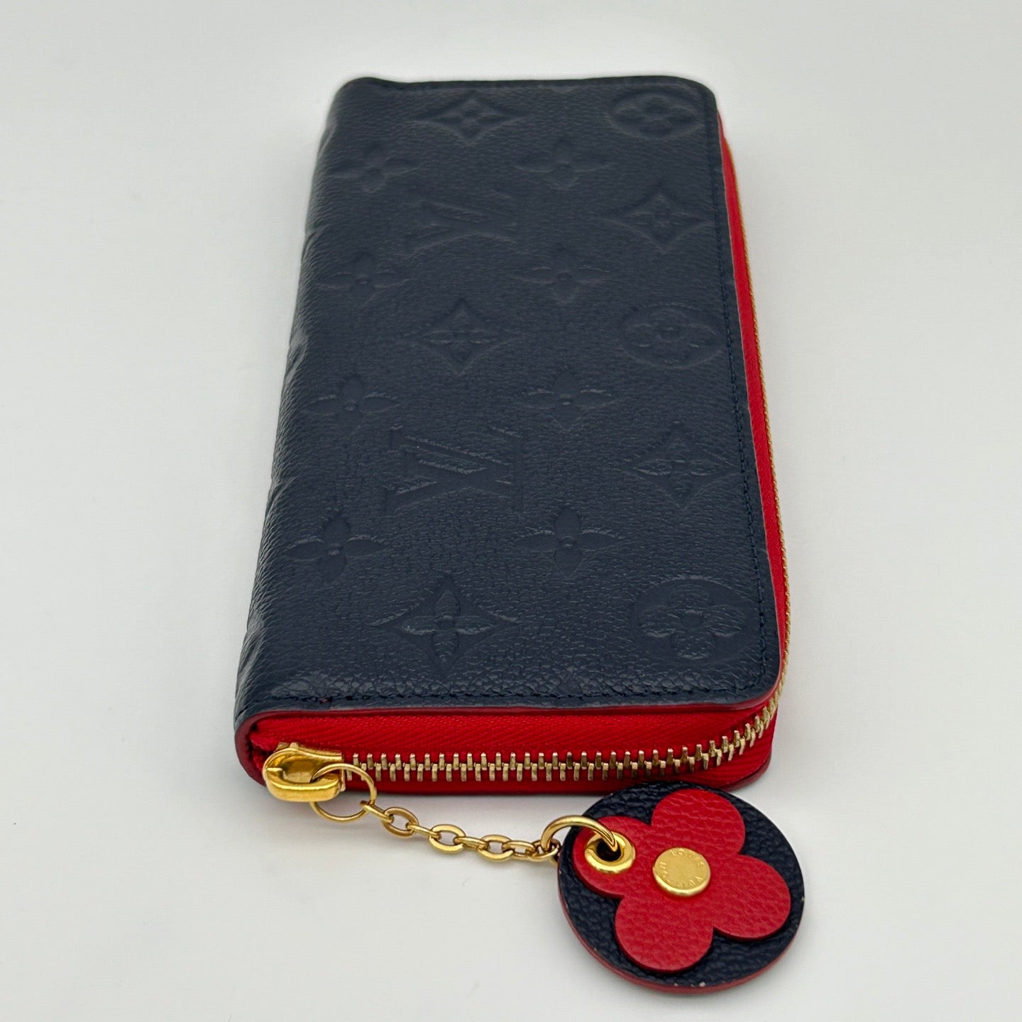 Louis Vuitton – Portefeuille zippé long en cuir monogram embossé bleu marine et rouge