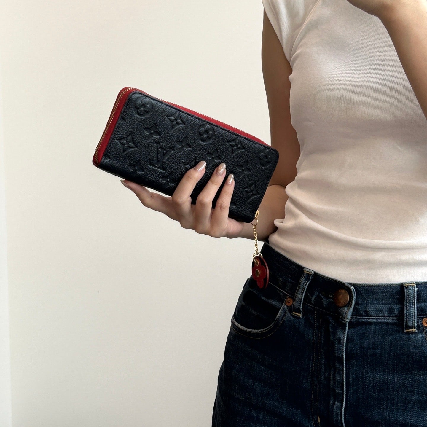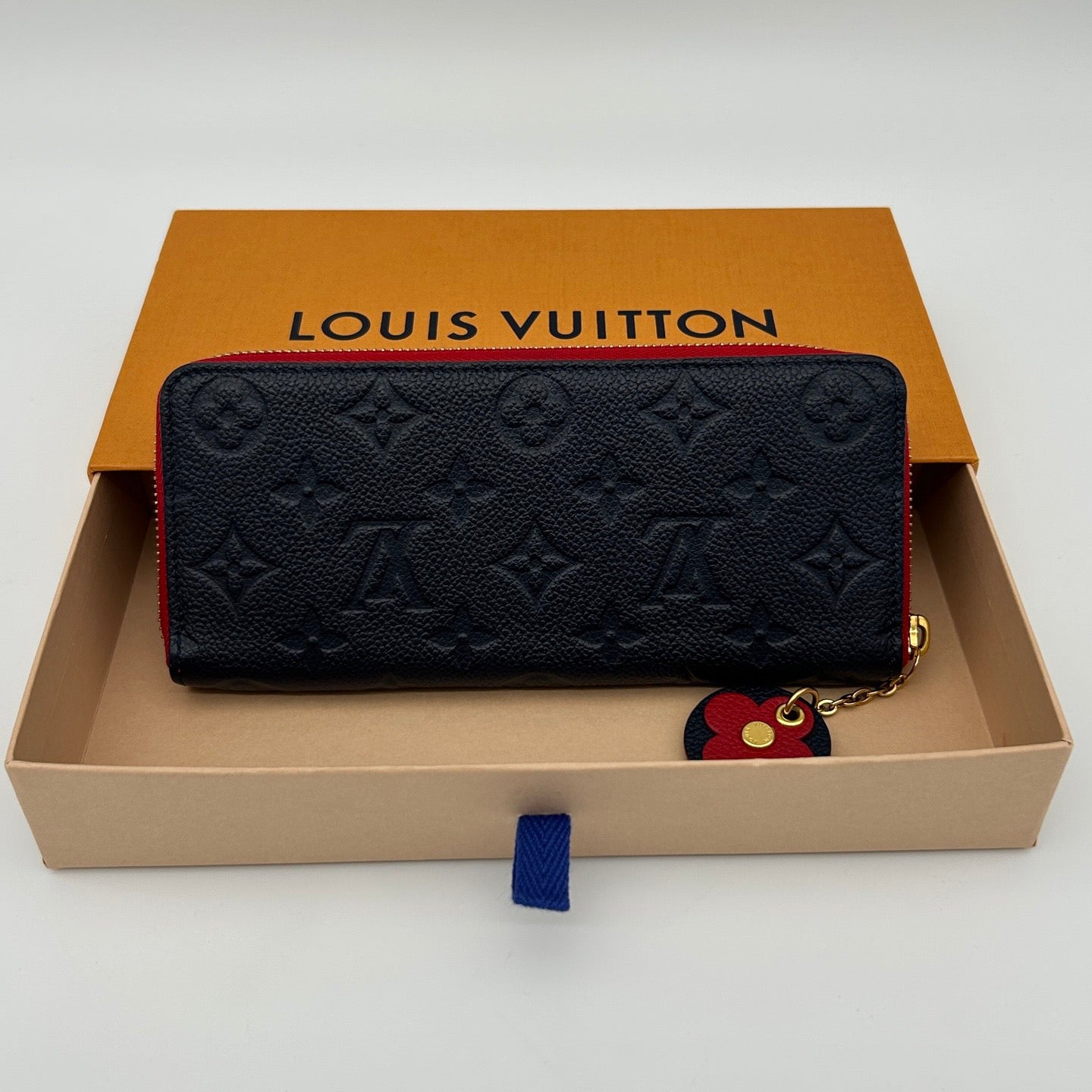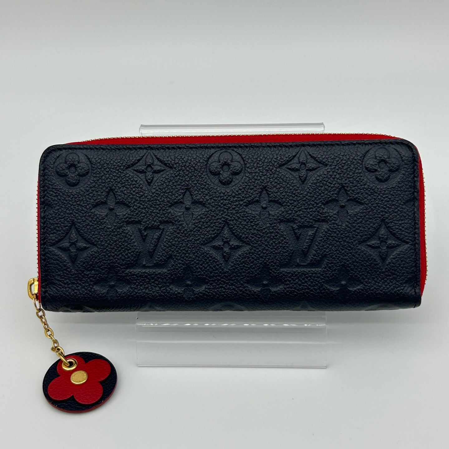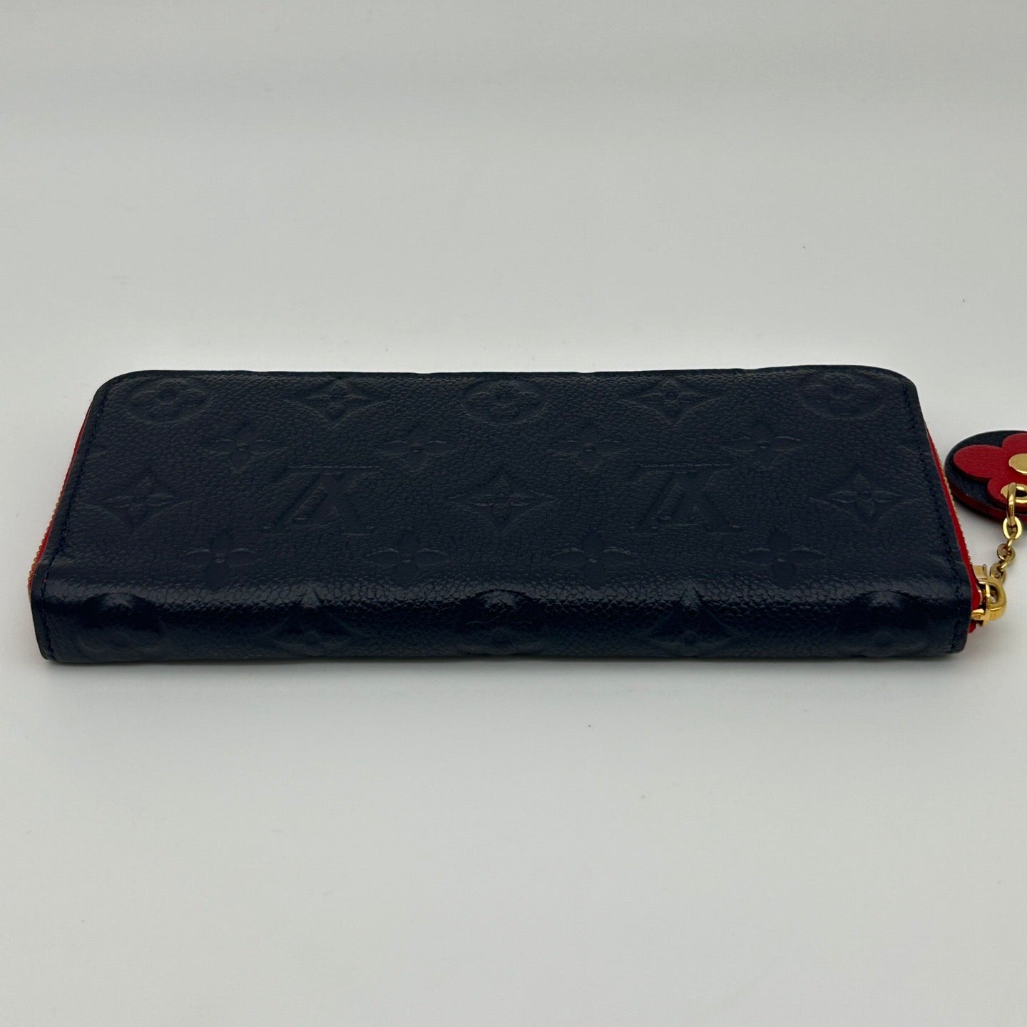 Louis Vuitton – Portefeuille zippé long en cuir monogram embossé bleu marine et rouge