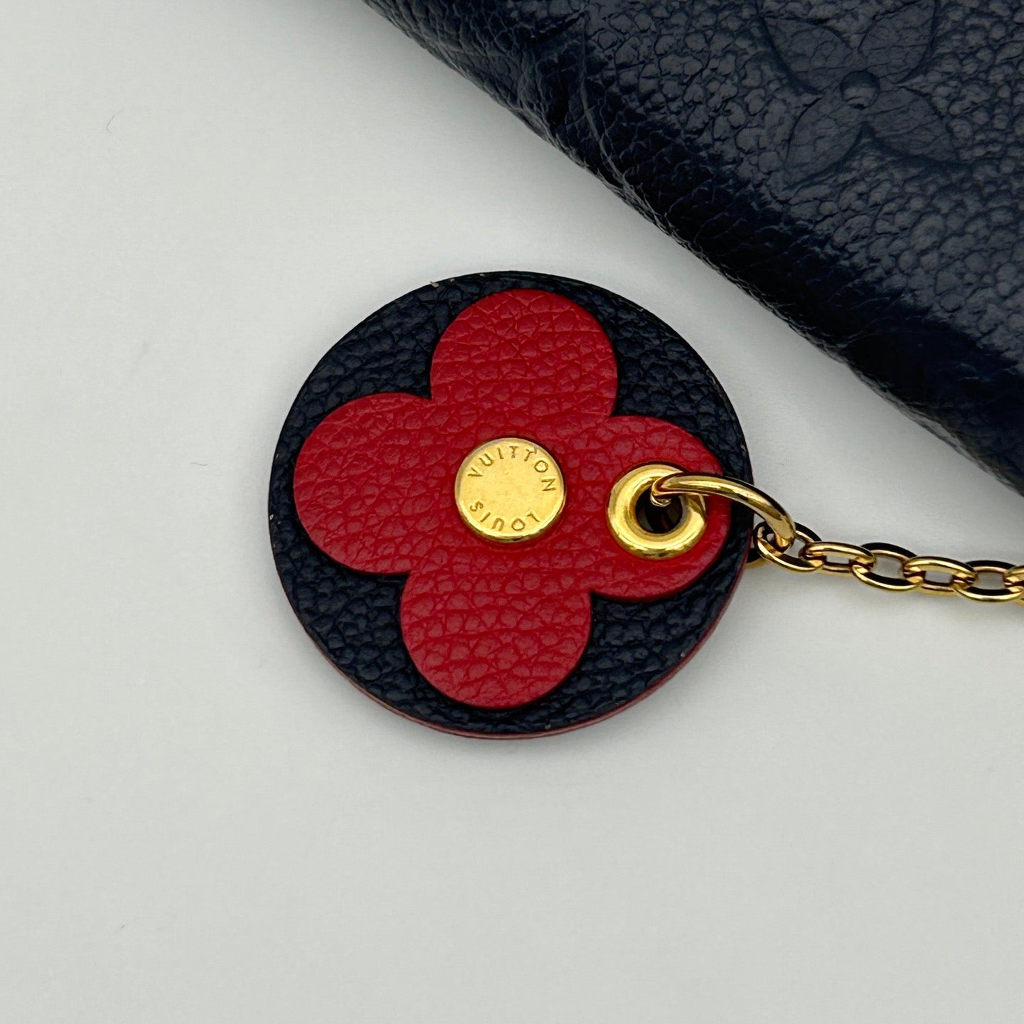Élégant portefeuille Louis Vuitton en cuir pleine fleur embossé du motif Monogram, dans un magnifique duo de bleu marine et rouge vif.