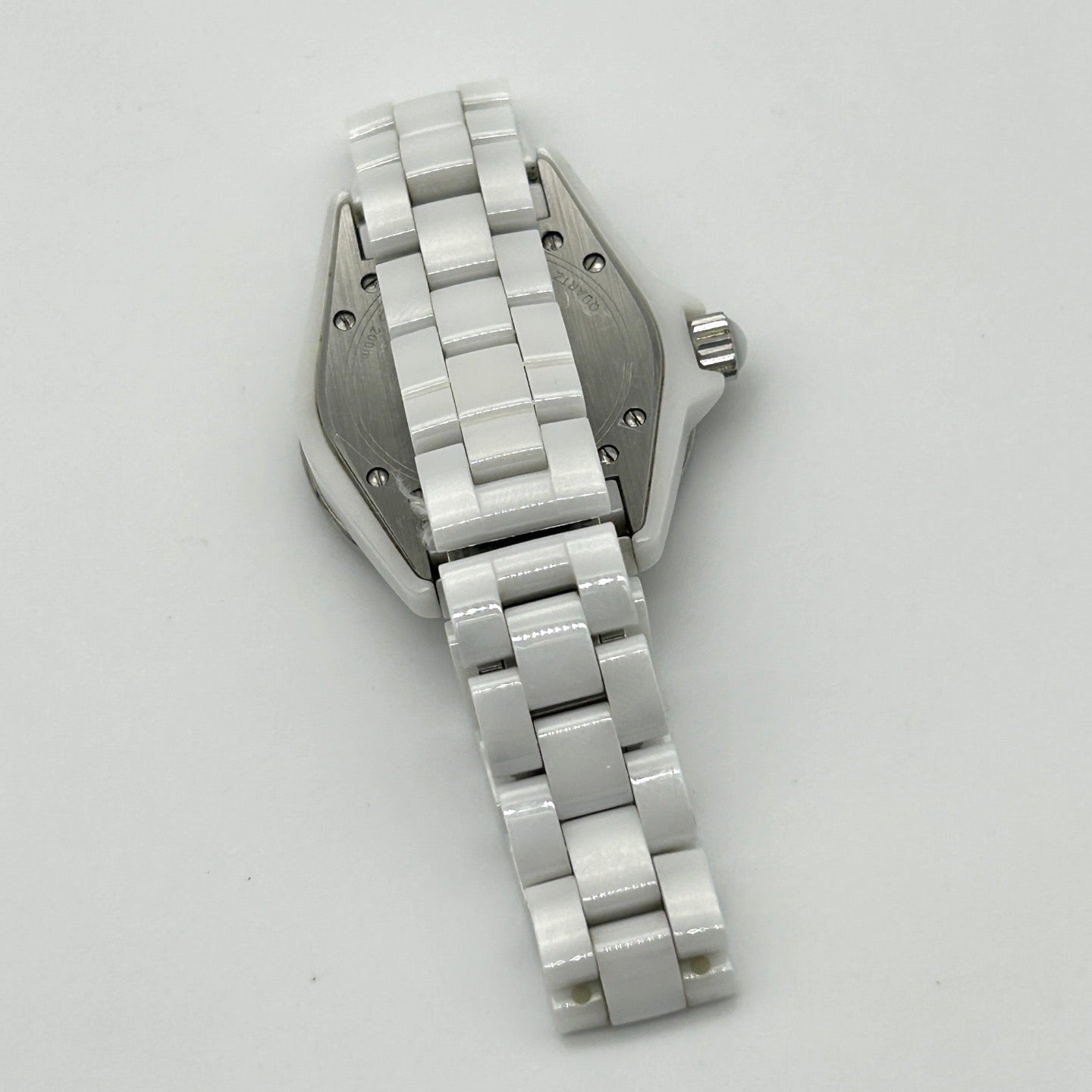 Élégante montre Chanel J12 en céramique blanche mouvement quartz, diamètre 33 mm, symbole absolu du chic moderne de la Maison.