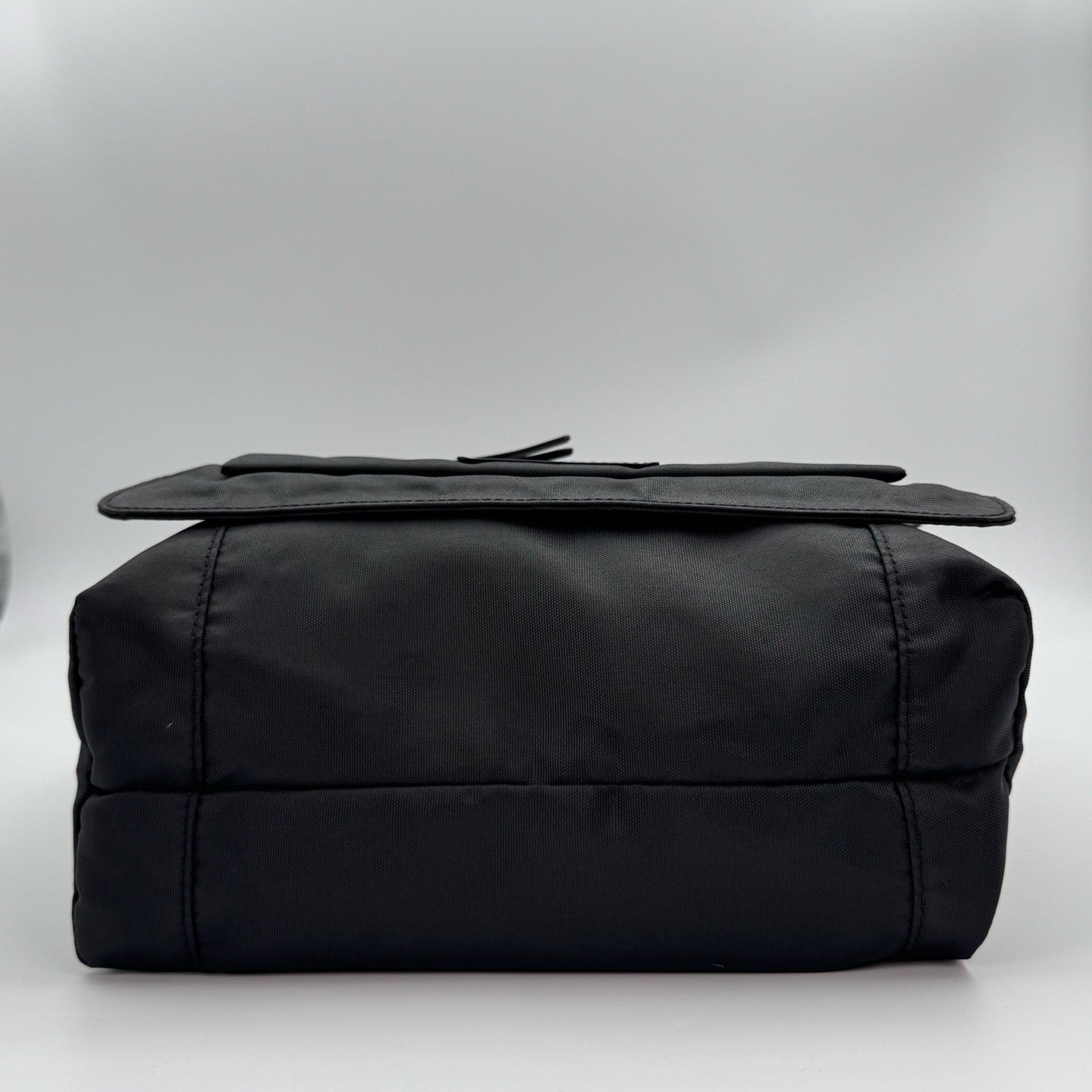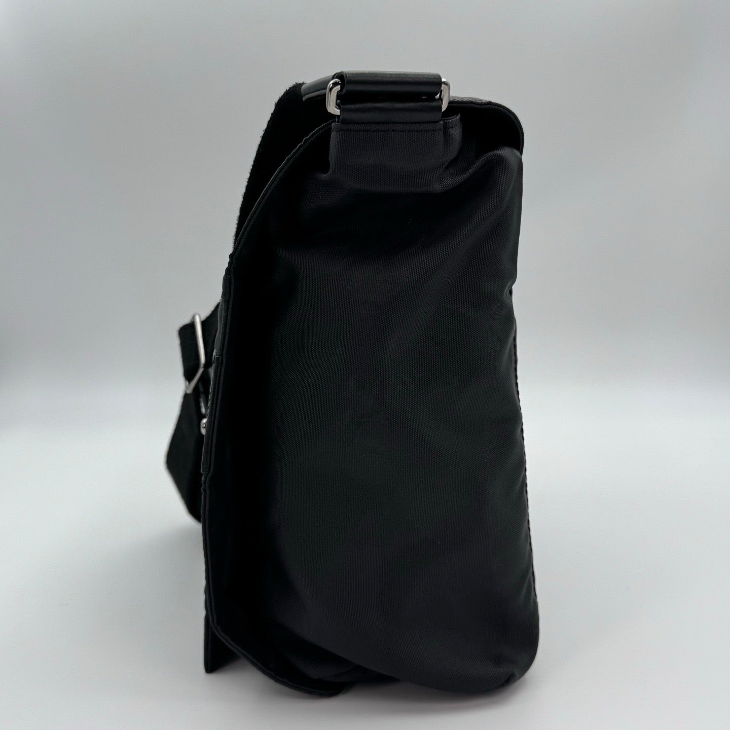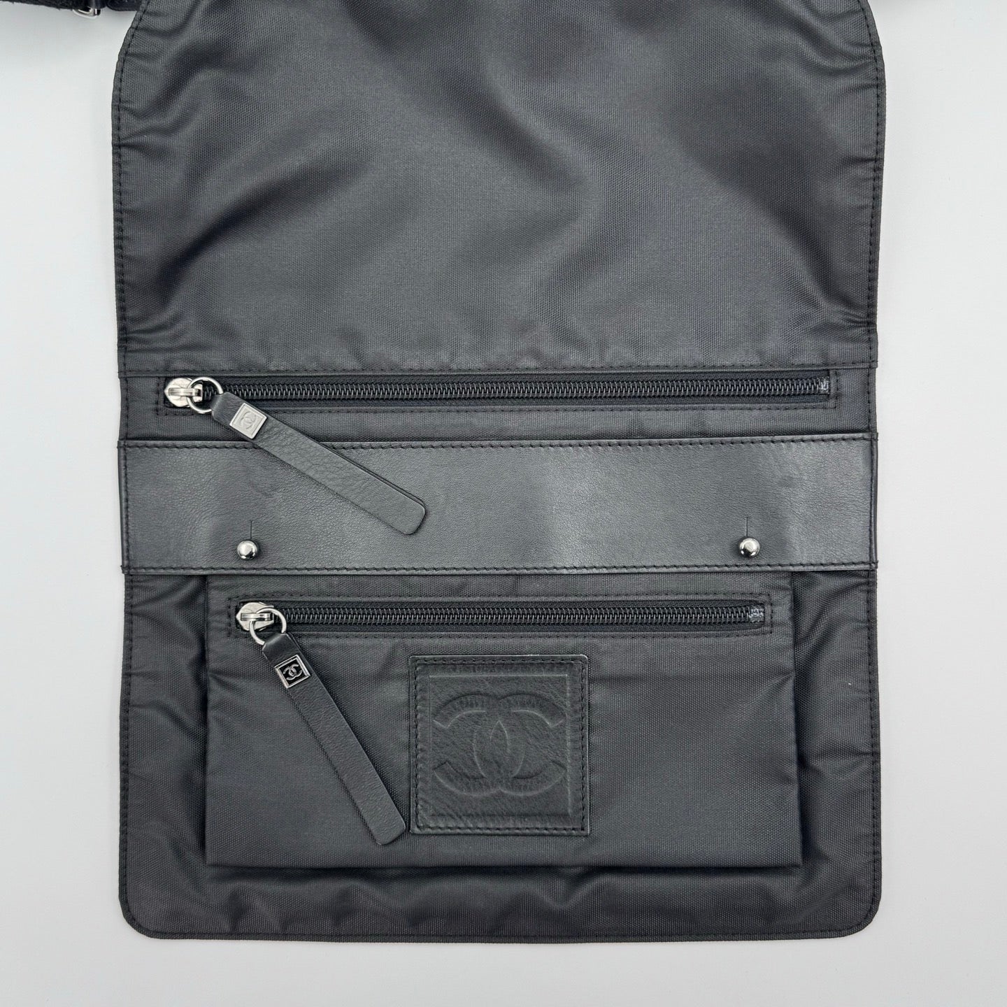 Ce sac Chanel en nylon noir combine praticité et luxe, avec un design sportif et moderne. Son logo carré distinctif et sa forme fonctionnelle en font un accessoire polyvalent, adapté aussi bien aux hommes qu’aux femmes.