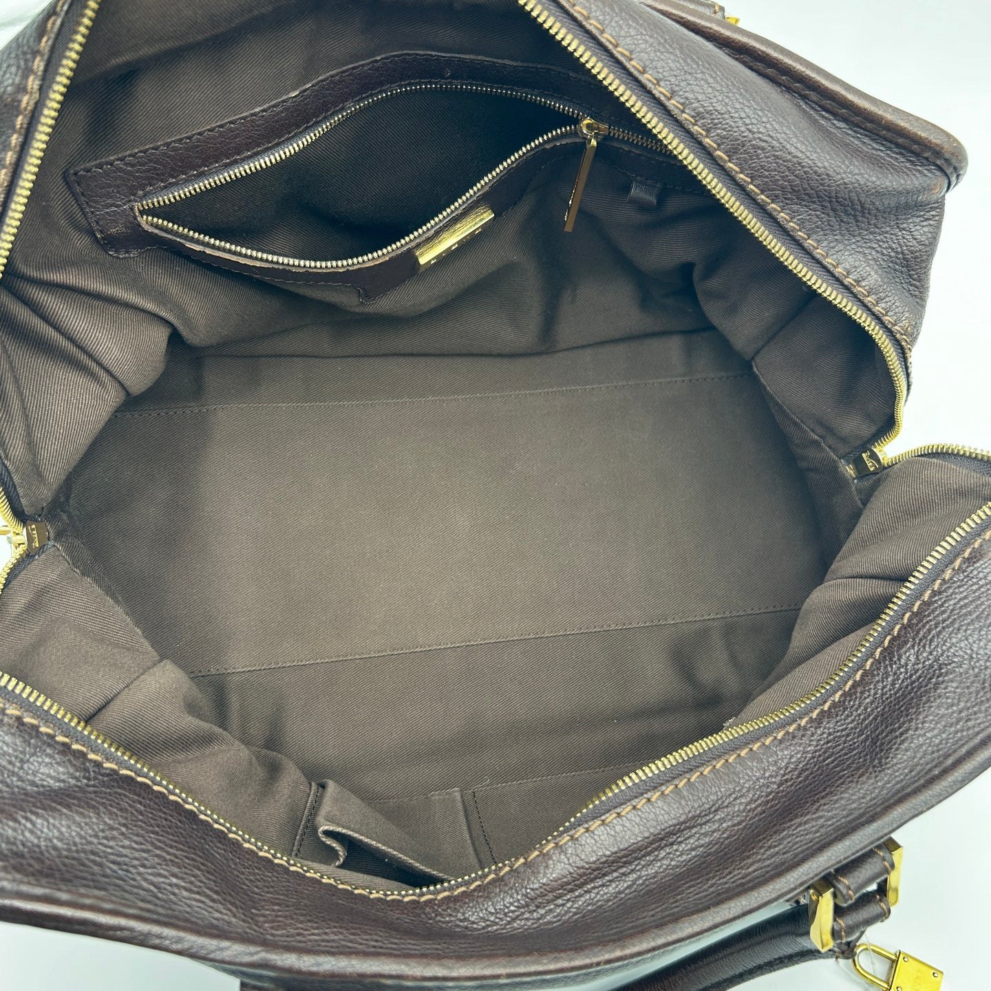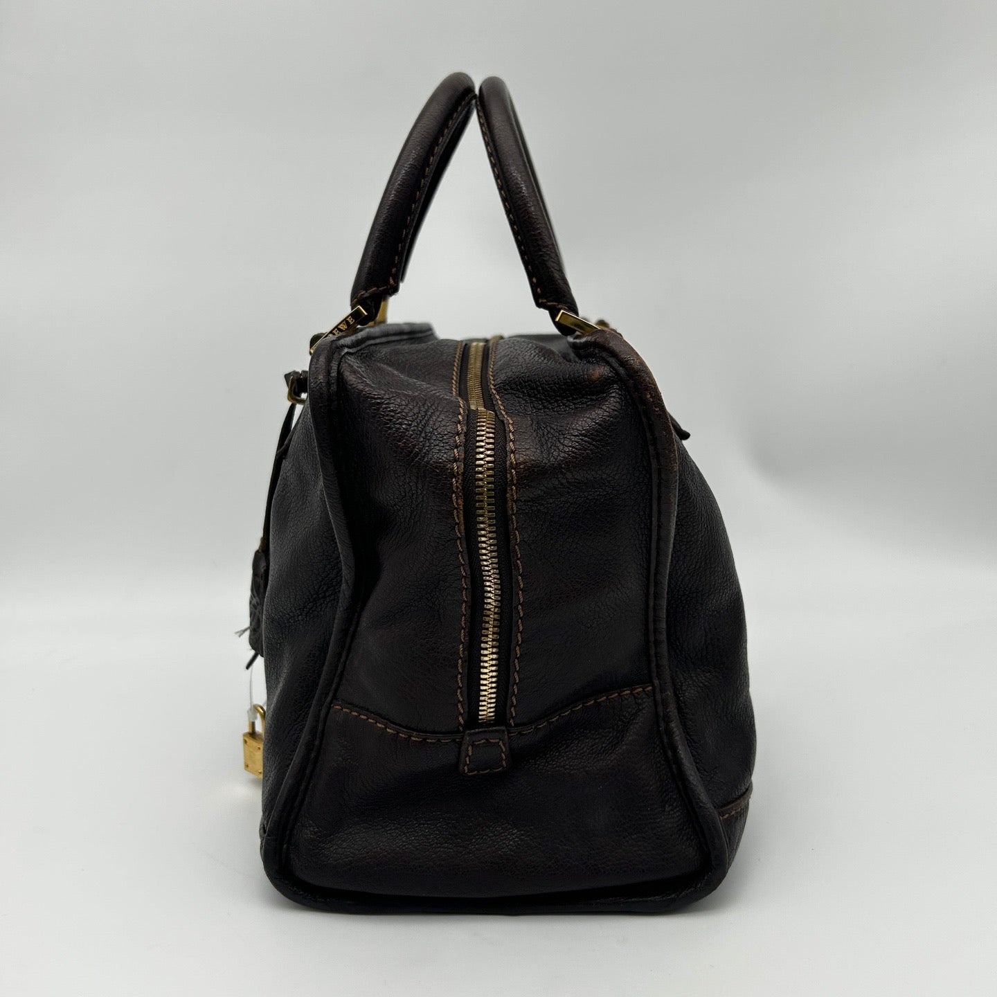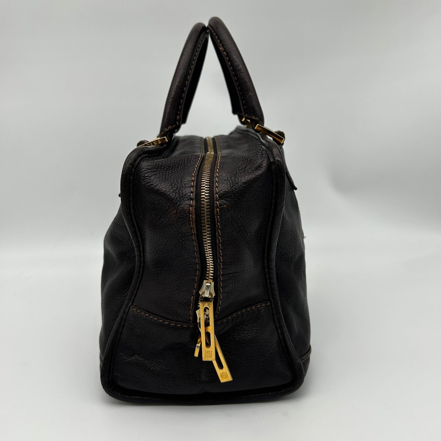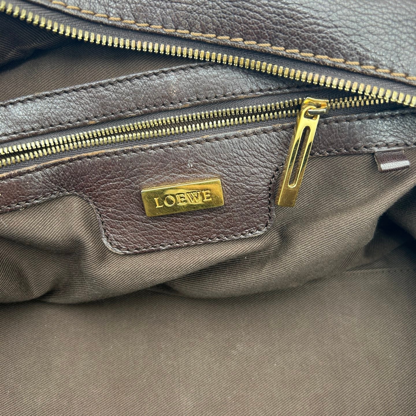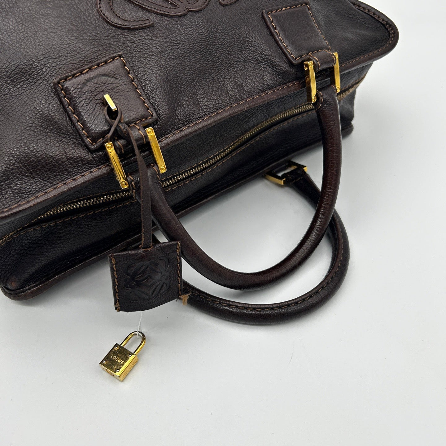 Superbe Loewe Amazona 35 en cuir grainé brun ébène, une icône intemporelle de la Maison espagnole. Ce modèle à la ligne structurée et élégante incarne l’équilibre parfait entre artisanat de luxe et fonctionnalité contemporaine. Son cuir souple et ses finitions impeccables reflètent tout le savoir-faire maroquinier de Loewe.