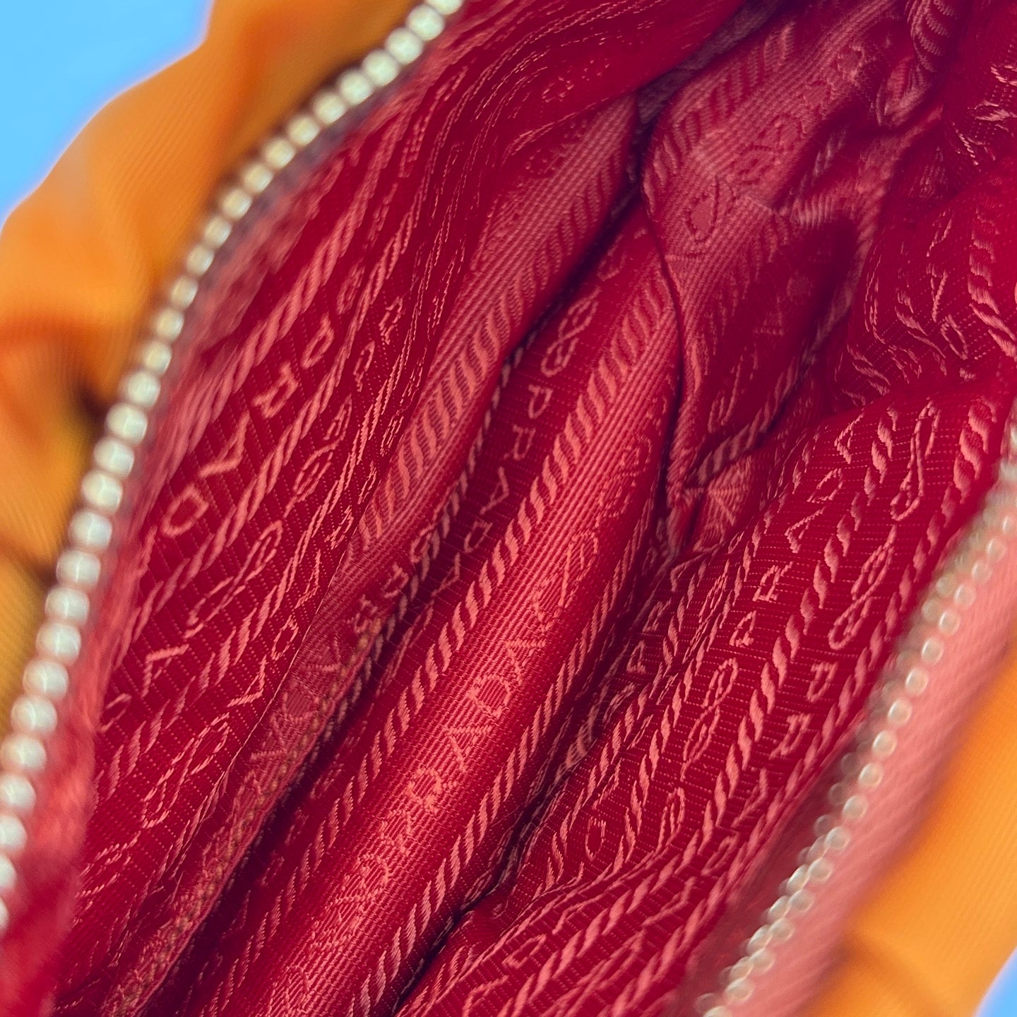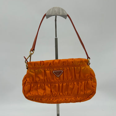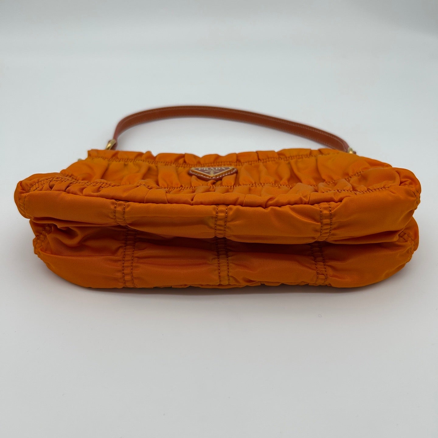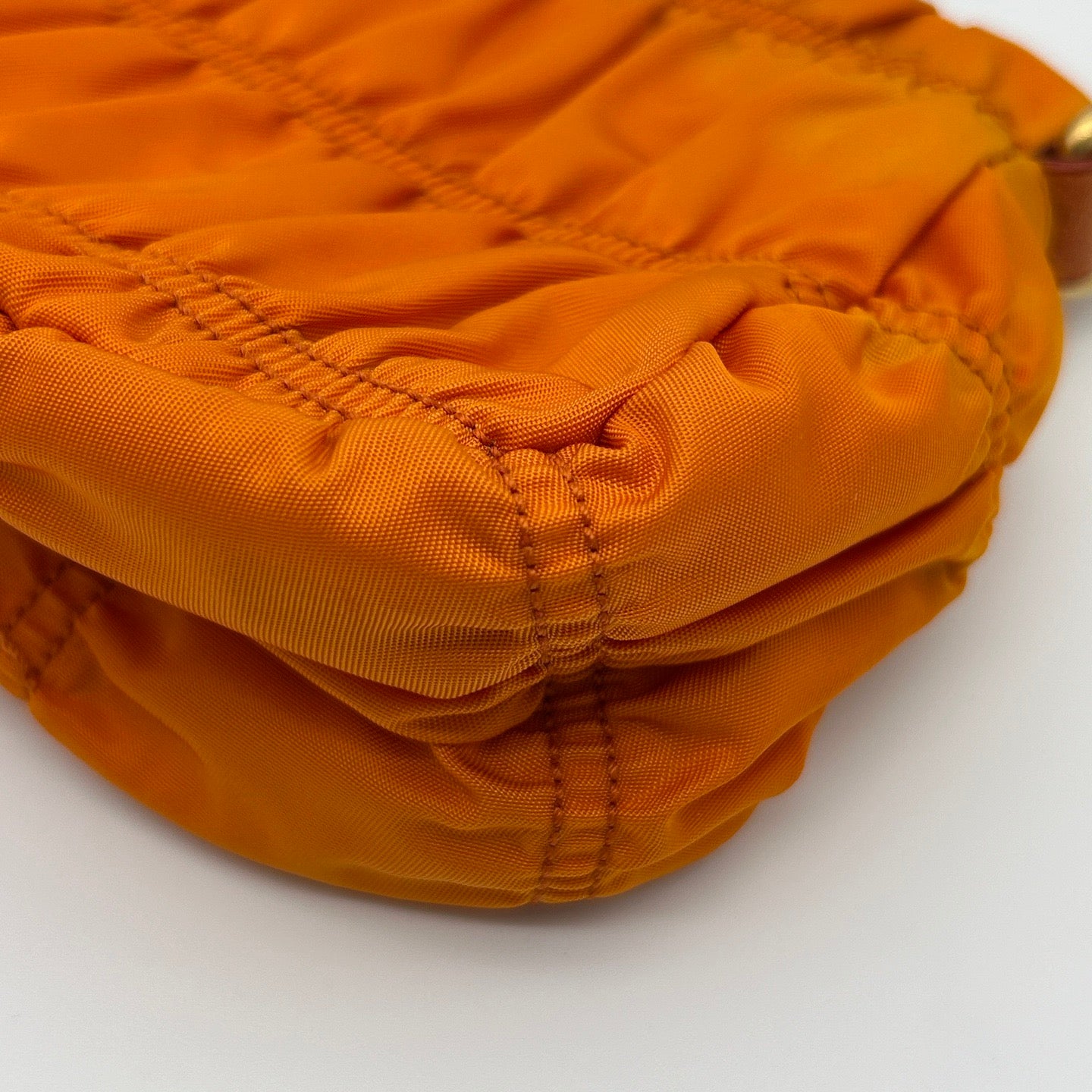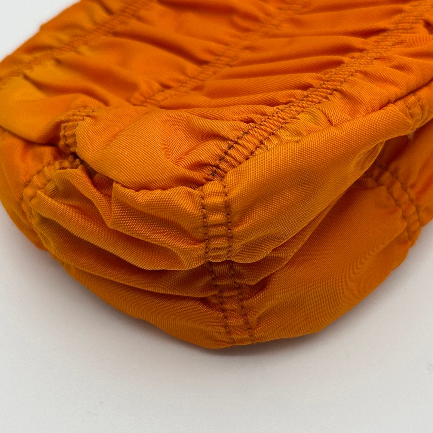 Prada – Sac Hobo en Nylon Plissé Orange Citrouille