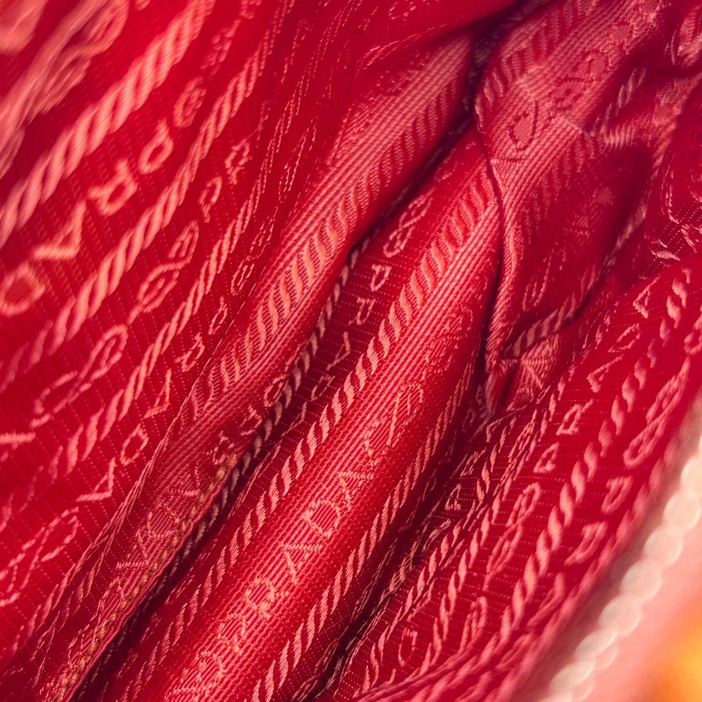 Sac Prada Hobo en nylon plissé, coloris orange citrouille, à la fois audacieux et raffiné. Inspiré du design parachute, ce modèle combine légèreté et modernité, tout en restant fidèle à l’esthétique minimaliste de la Maison italienne.
