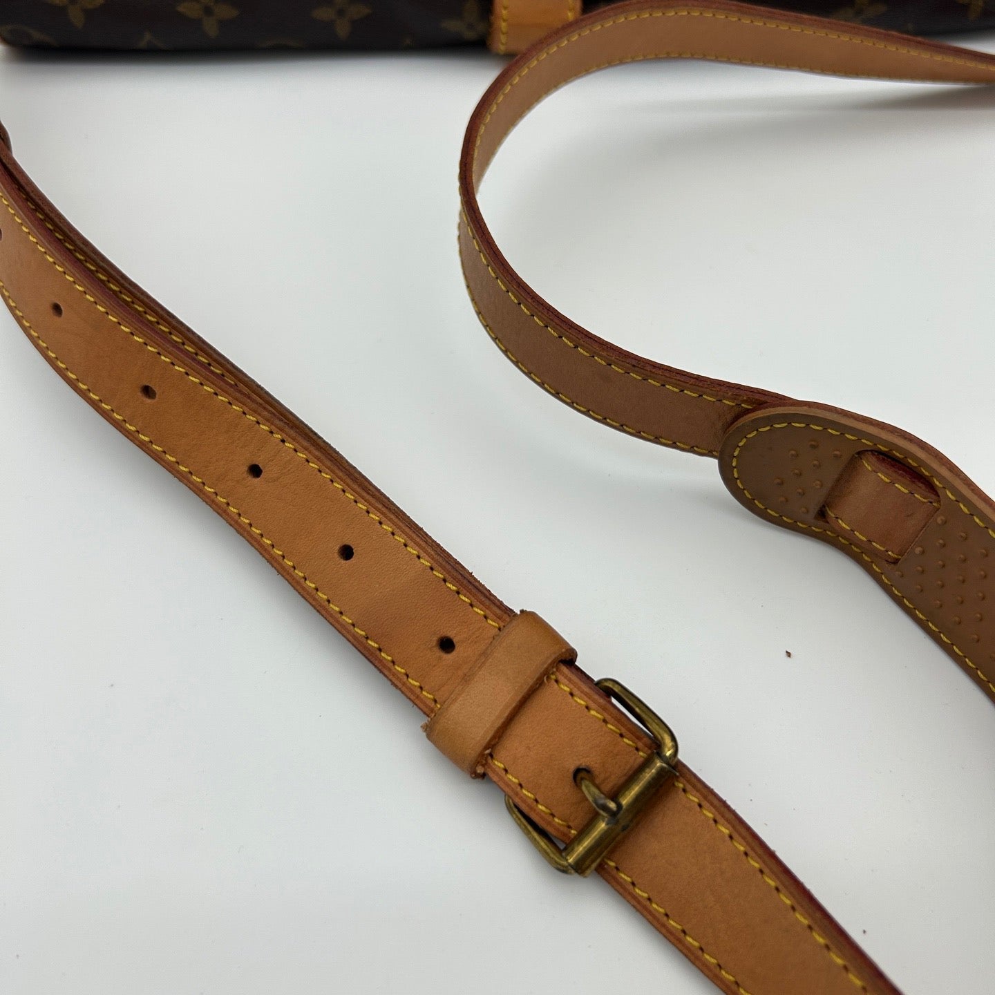 Élégant sac Louis Vuitton Twin Monogram Medium, aussi appelé Double Star, en toile Monogram LV emblématique. Ce modèle vintage allie légèreté, praticité et style intemporel, avec sa bandoulière ajustable permettant un porté épaule ou croisé.