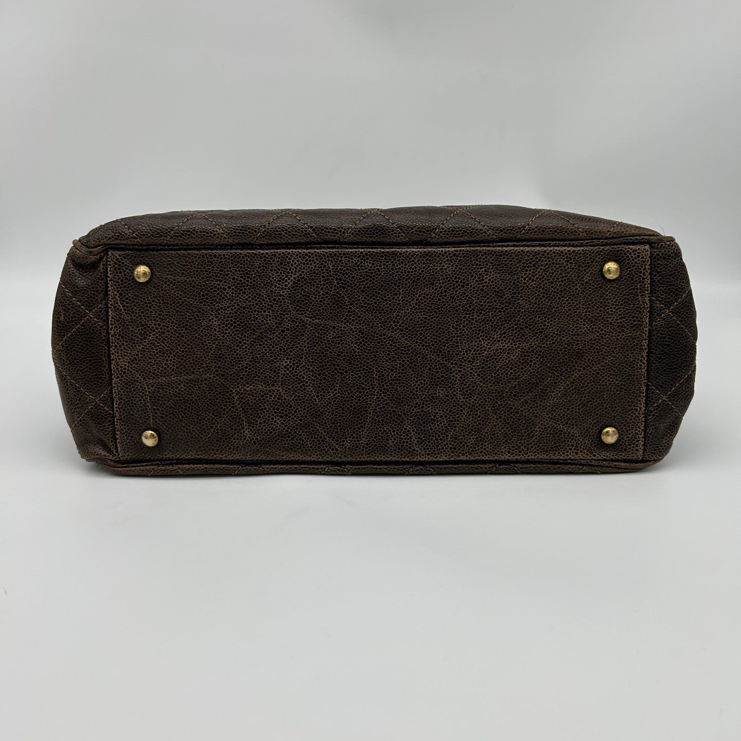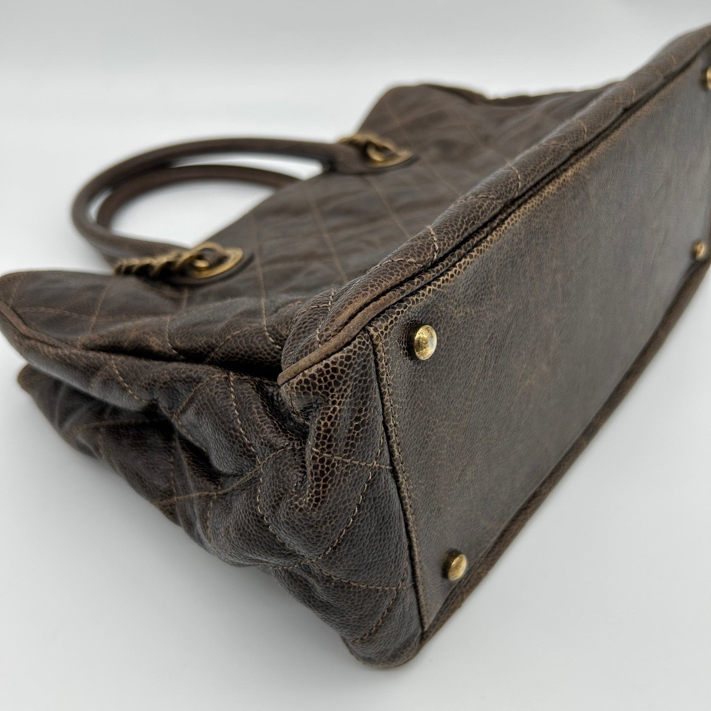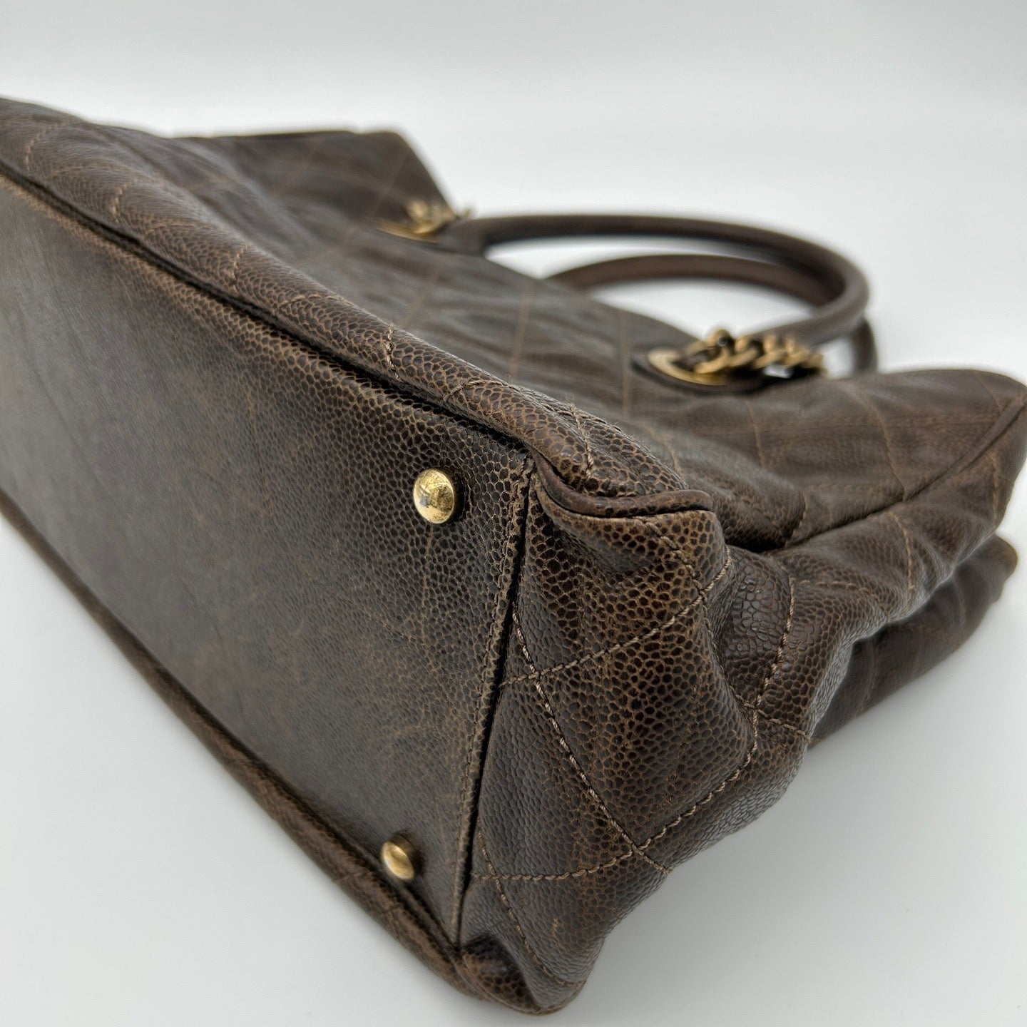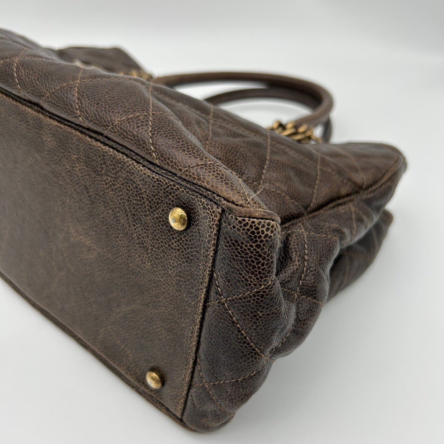 Chanel – Sac 2-Way Tote Vintage Marron Doré en Cuir Caviar