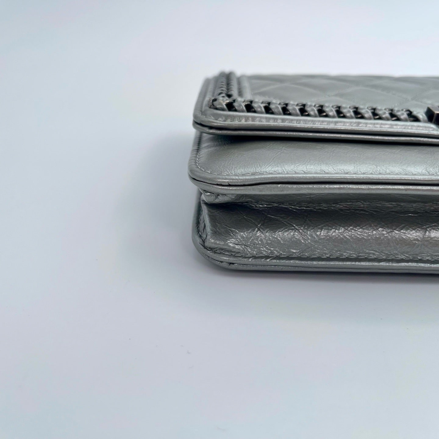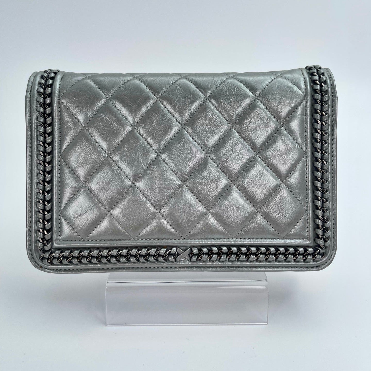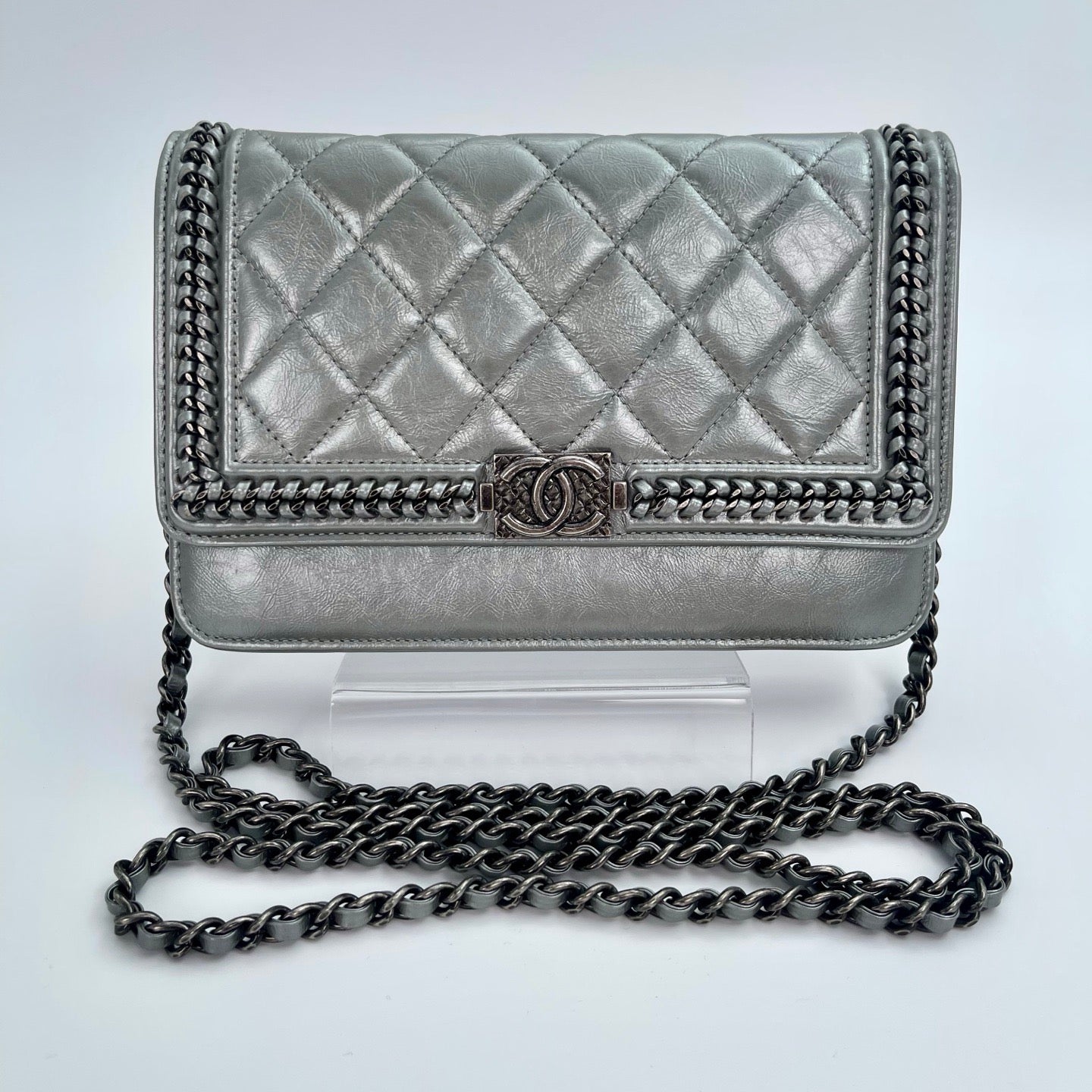Chanel – WOC “Space Silver” Le Boy avec bordure métallisée