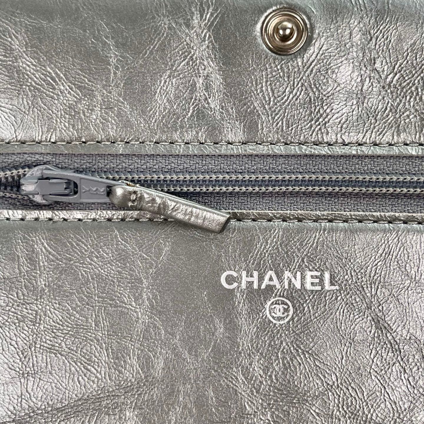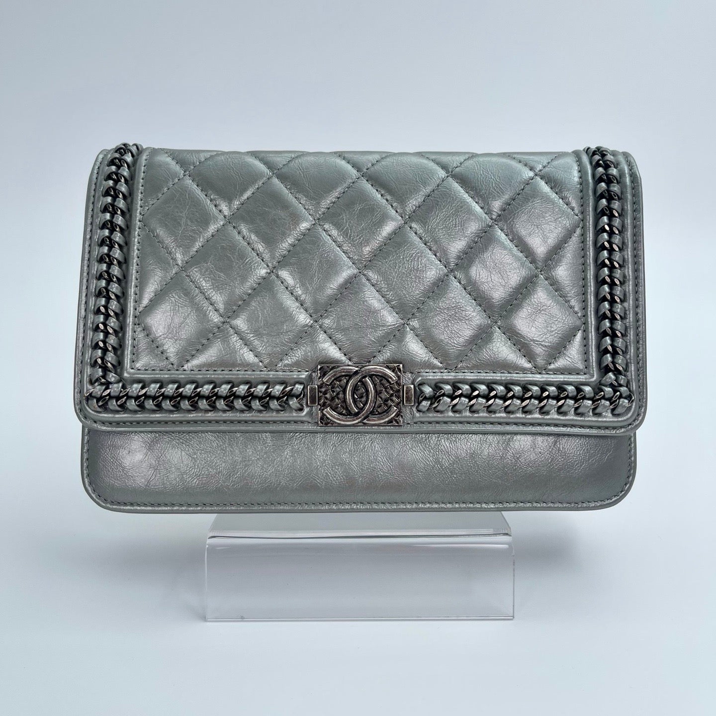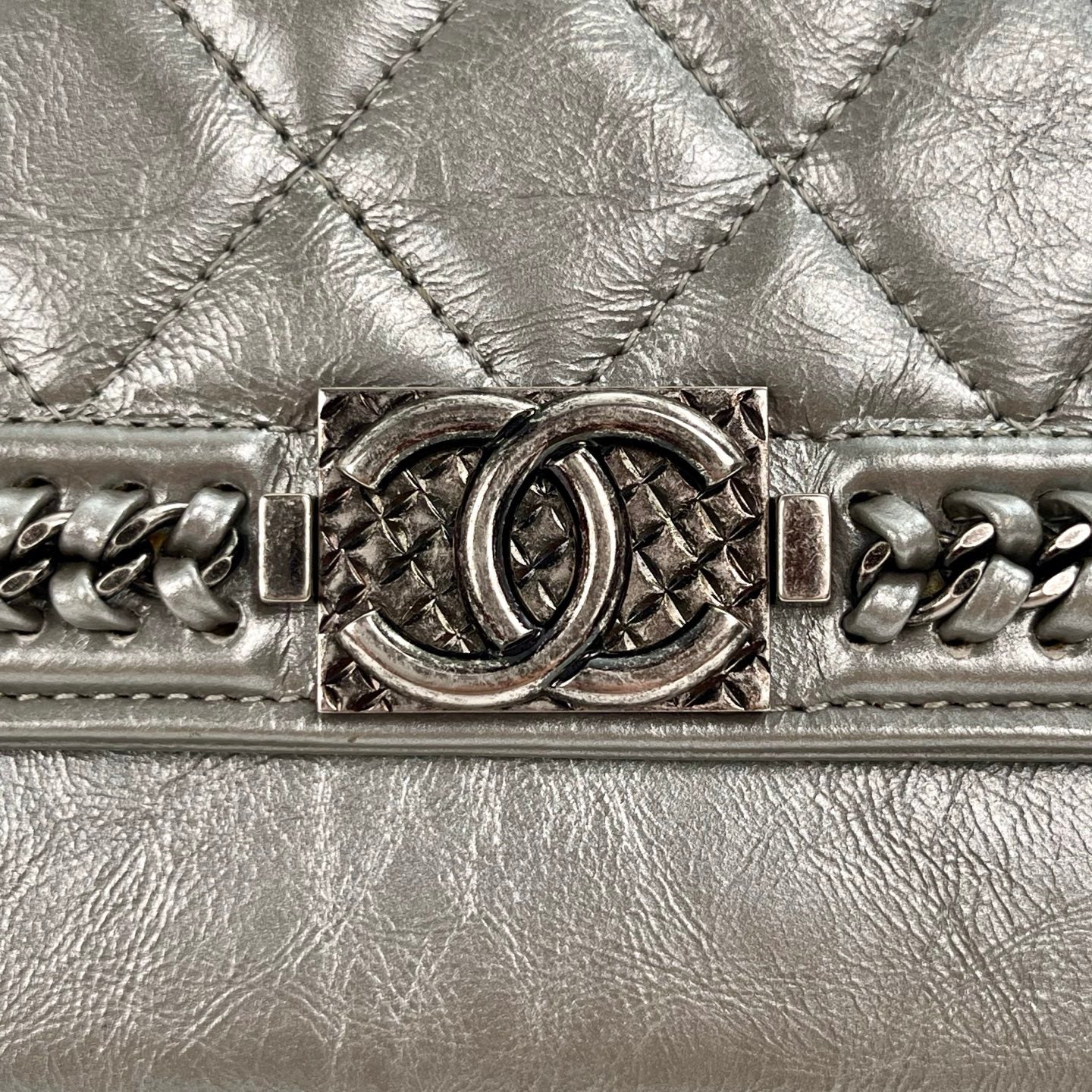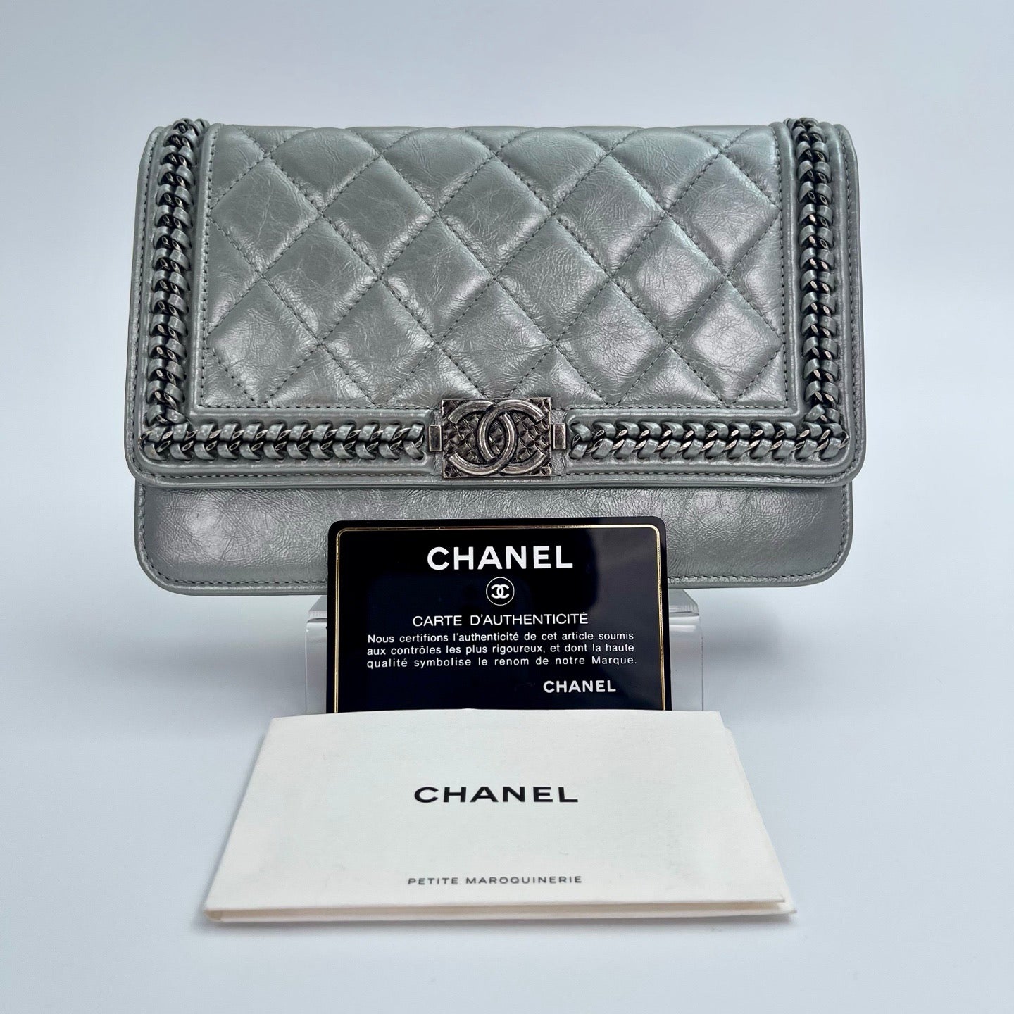 Chanel – WOC “Space Silver” Le Boy avec bordure métallisée