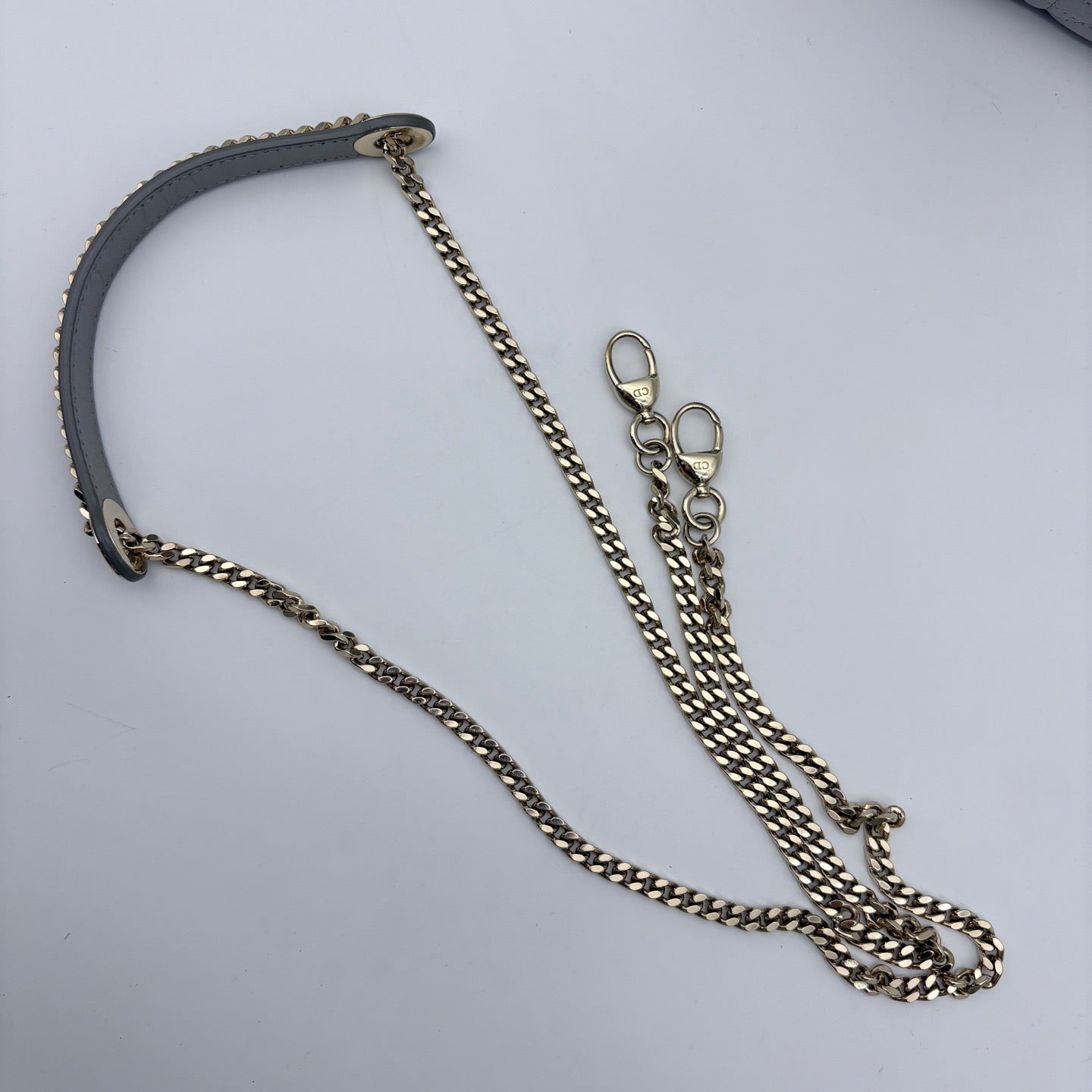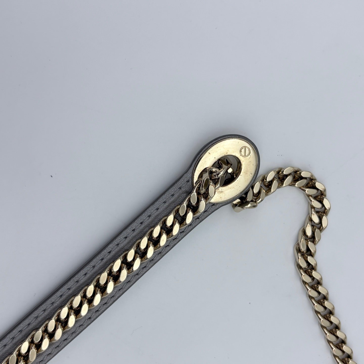 Sac iconique Dior Lady Dior Mini, symbole d’élégance intemporelle. Cette version mini 2way est réalisée en cuir d’agneau gris perlé, doux et lumineux, avec finitions dorées, offrant un rendu chic et raffiné. Grâce à sa bandoulière amovible, il se porte aussi bien à la main qu’en bandoulière.