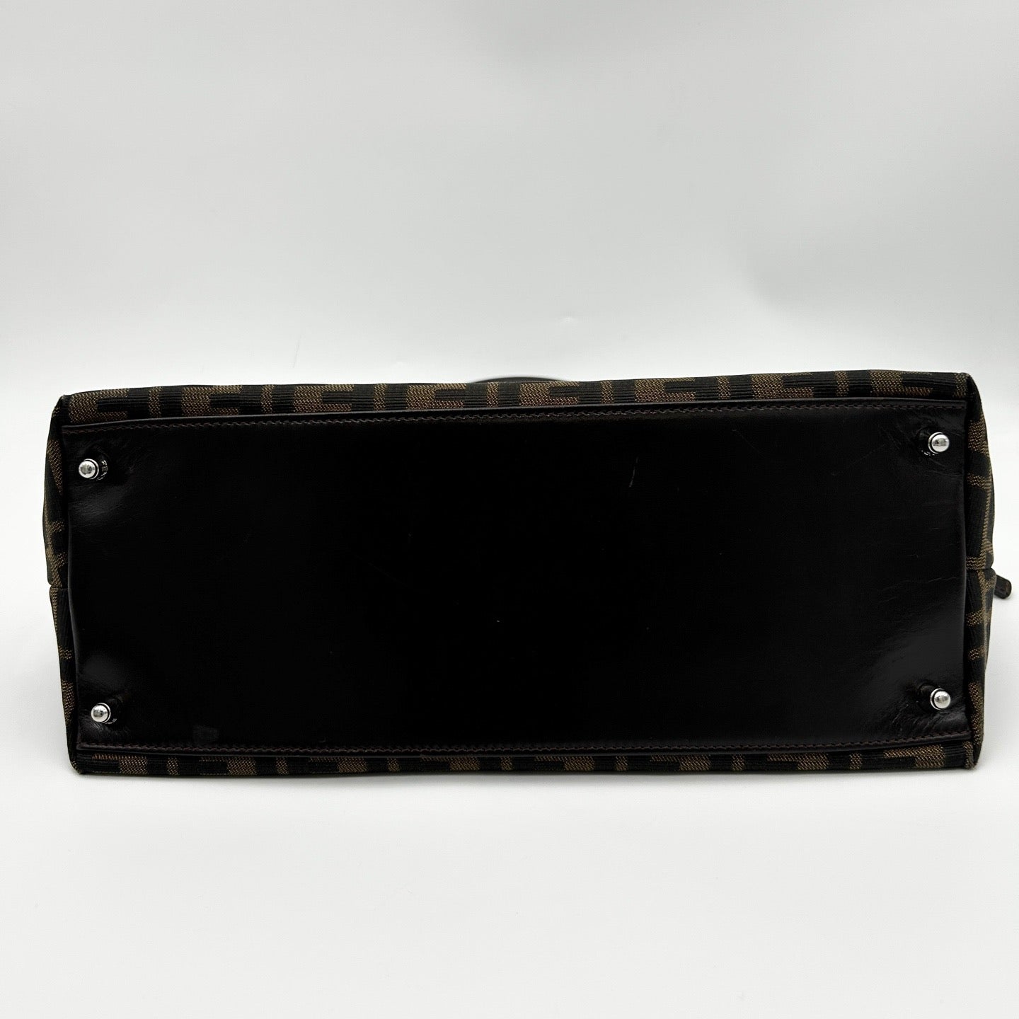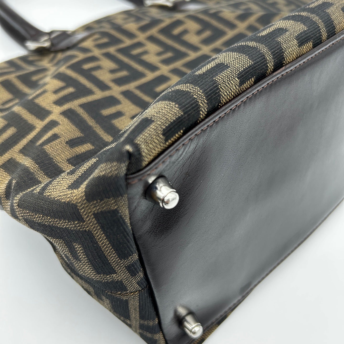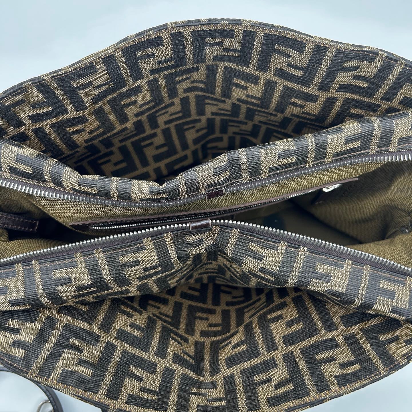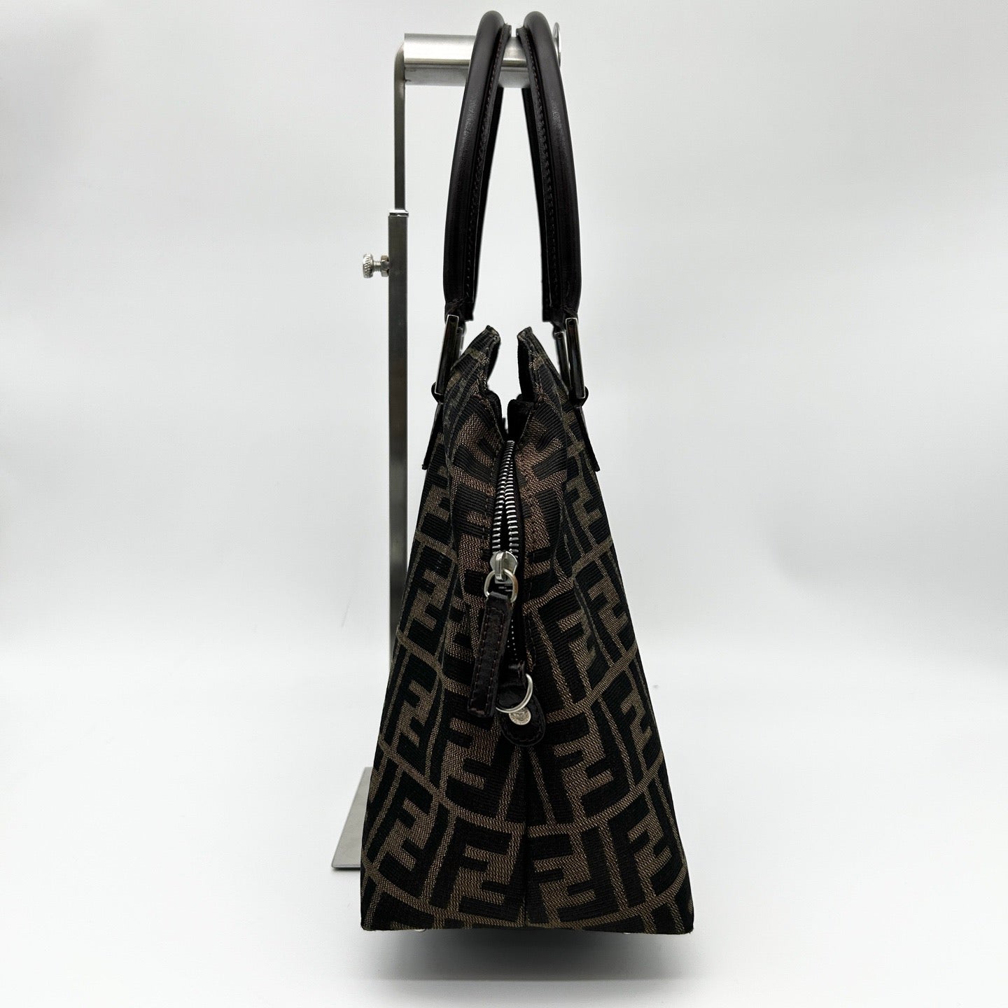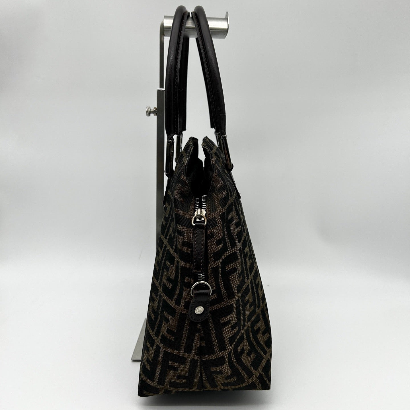 Sac Fendi Boston vintage en toile monogrammée Zucca, doté de poignées arrondies et d’une bandoulière amovible.