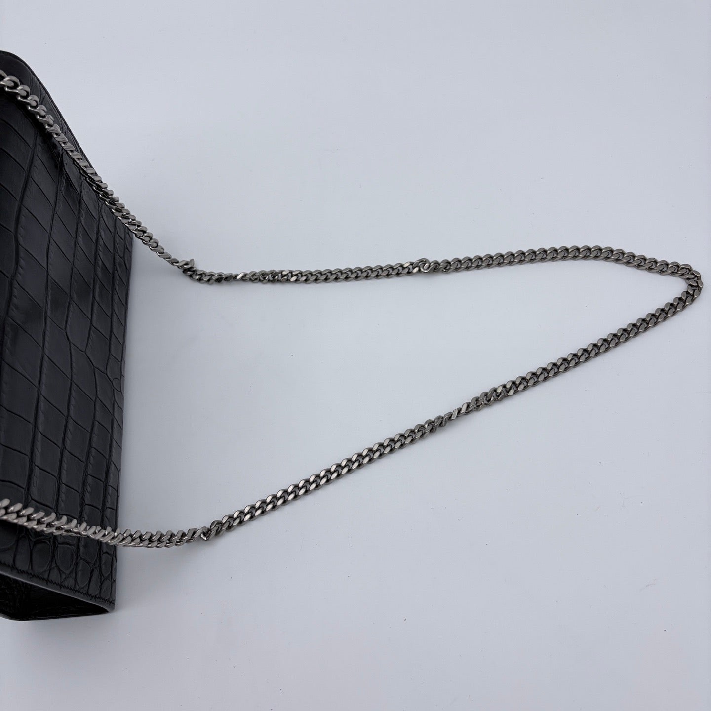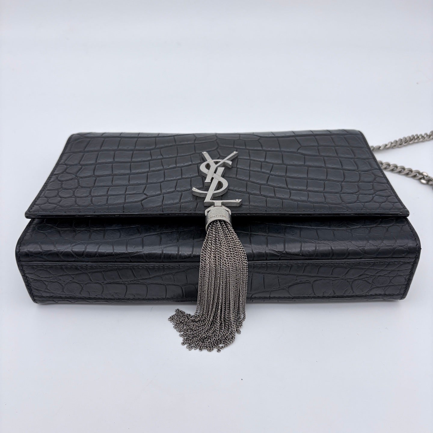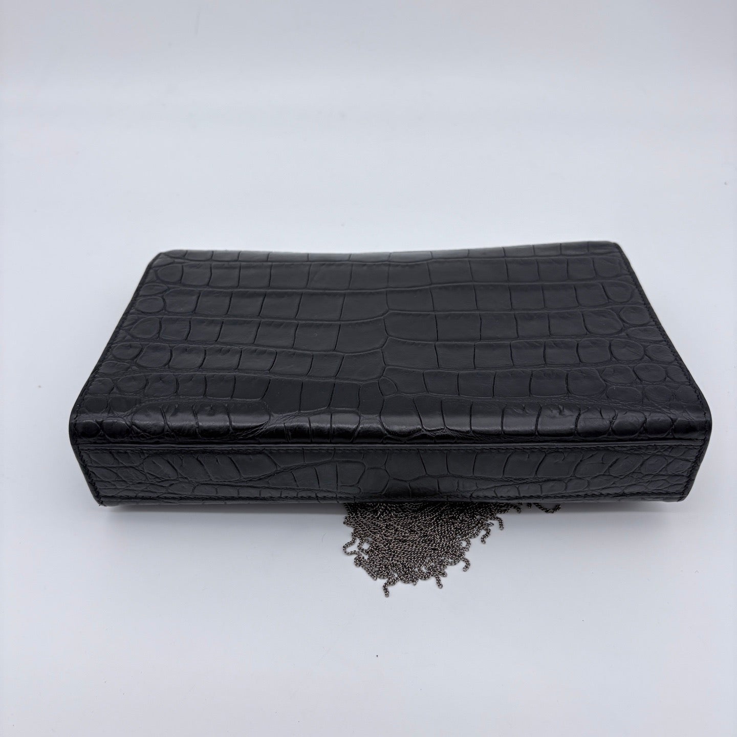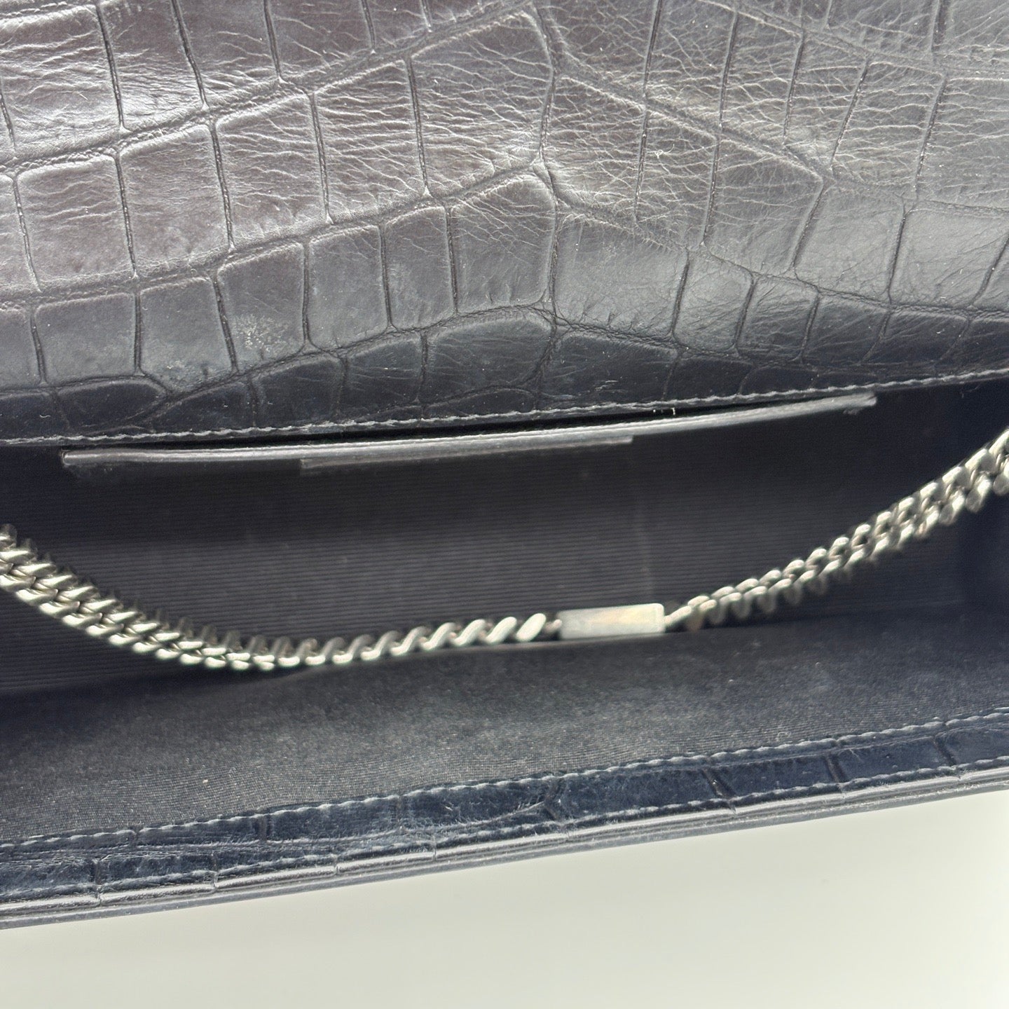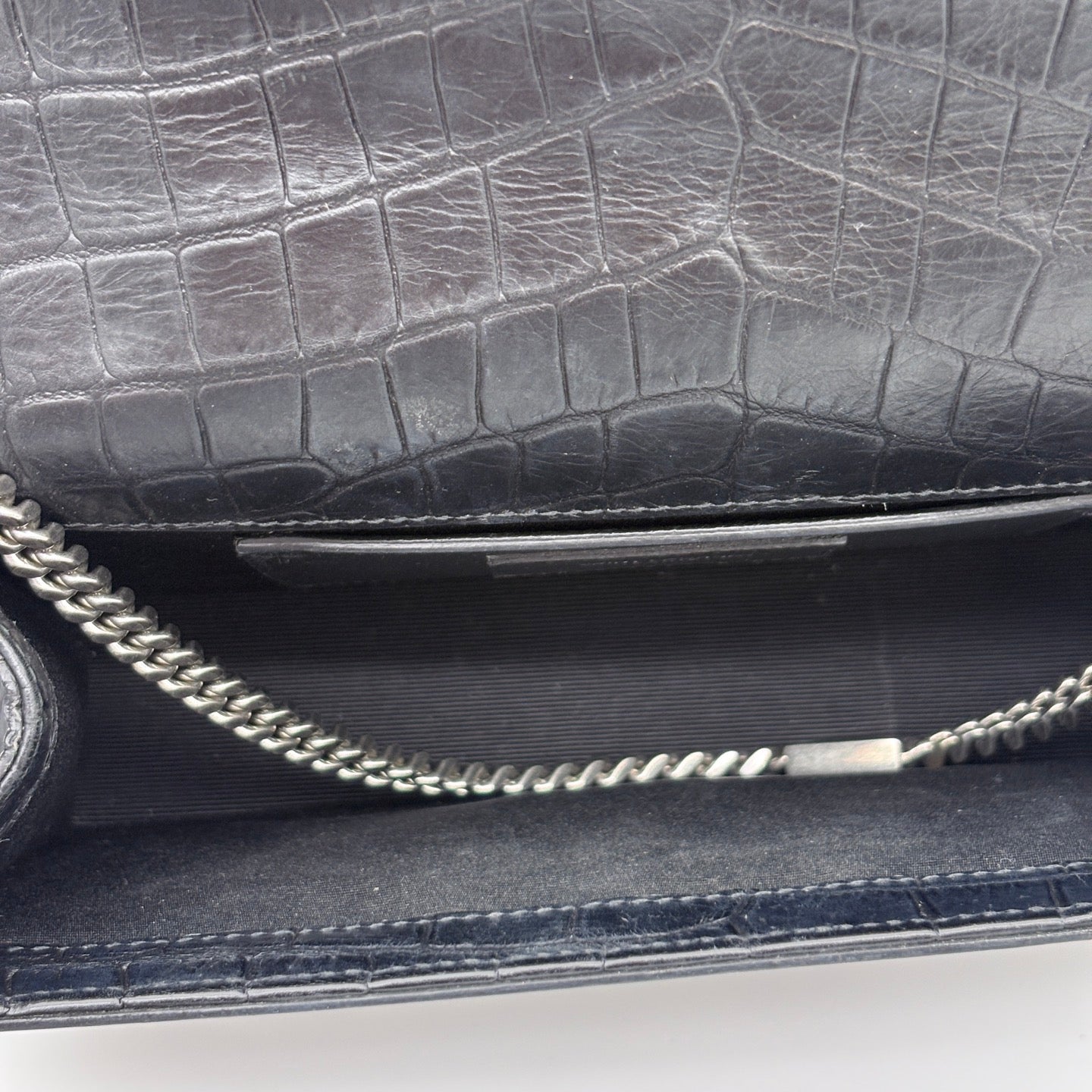 Saint Laurent Kate – Noir – Cuir embossé croco