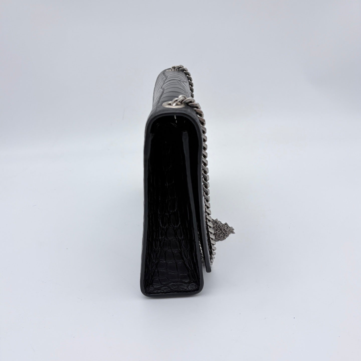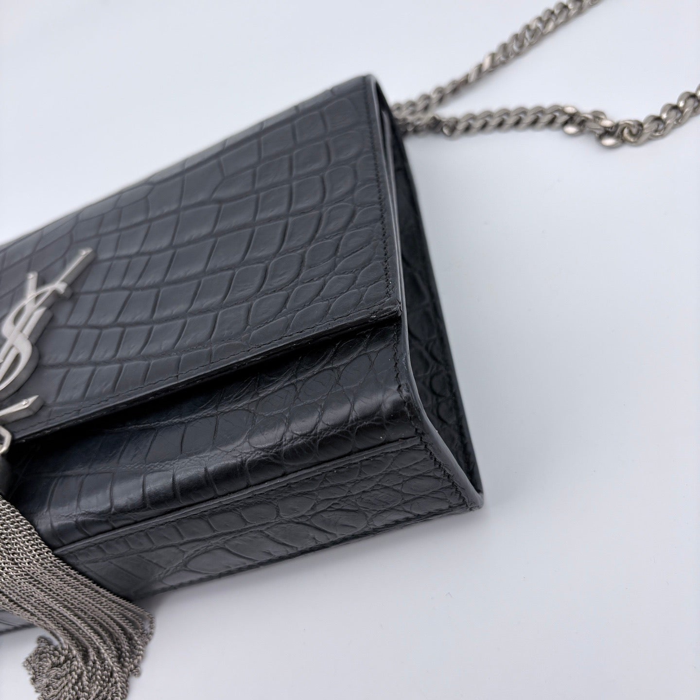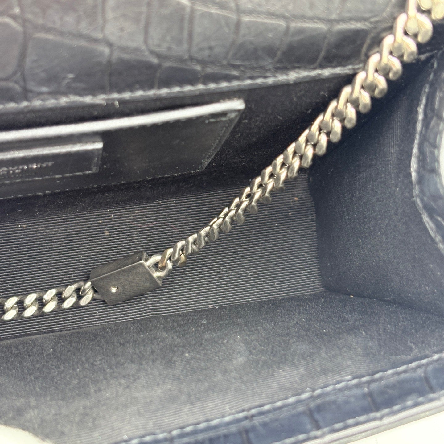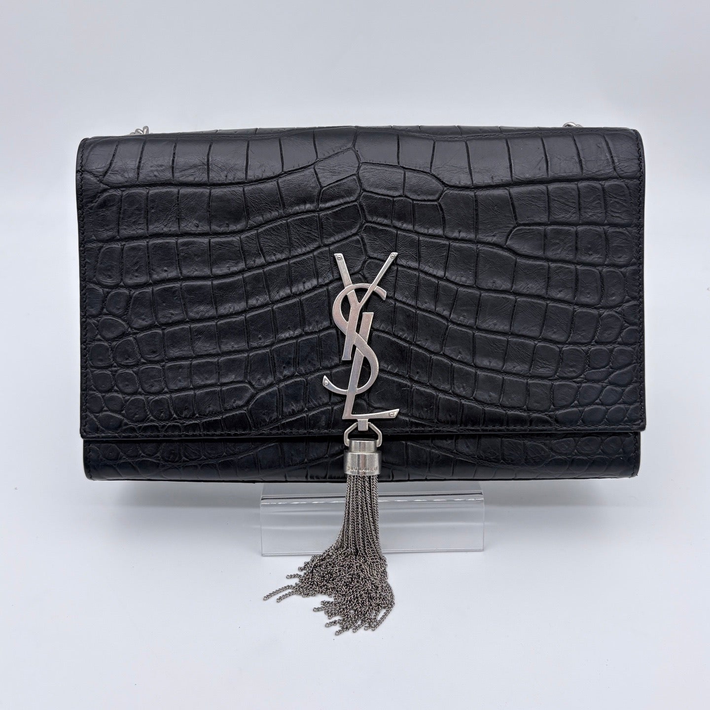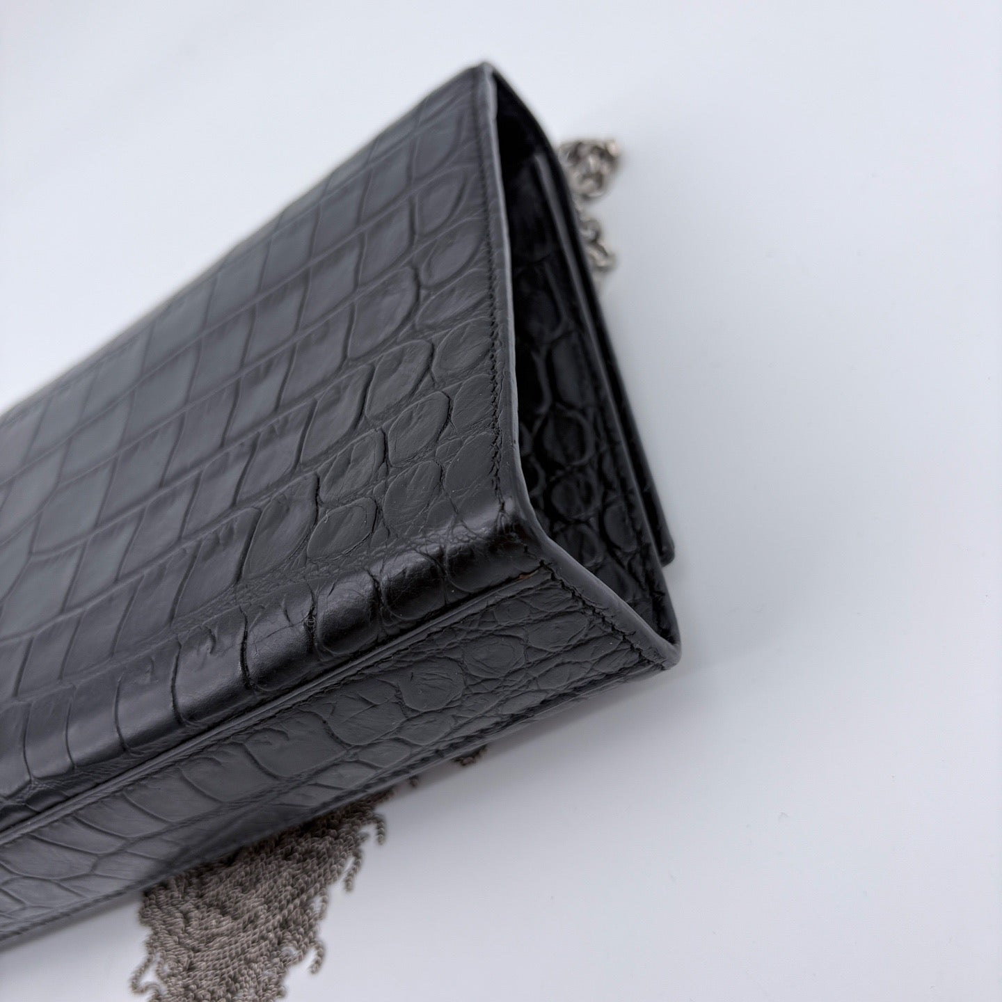 Saint Laurent Kate – Noir – Cuir embossé croco